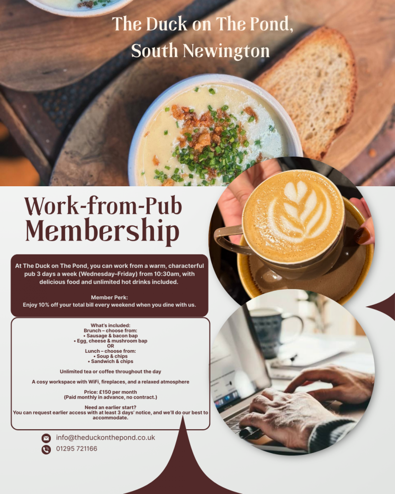- Drop us a line: wanna chat or check the dates? Call us at 01295 721166 or email info@theduckonthepond.co.uk
